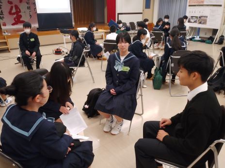 昨年度は、認知症や障がい、ジェンダーについての人権意見発表でした。意見交換していくなかで、認知症の家族をもつ中学生が思いのほかたくさんいることがよく分かりました。そして、同じような悩みのなかでいる中学生が、他者の発表を聞いて、思いを変えていく姿に、やはり語り合うことは大切だなーと感じました。
