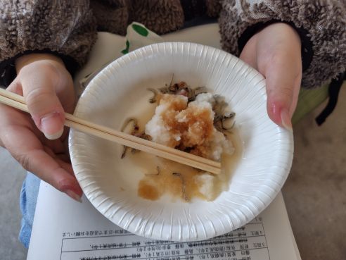 今日の日のために、美味しいものをいろいろと用意してくれていました。これがまた本当に美味しい。大根おろしとちりめん。あまくて美味しいんです。