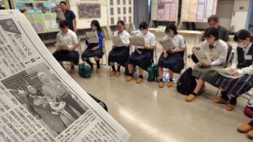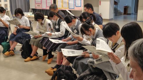 食い入るように新聞のコピーを見つめる中高生の姿が印象的でした。