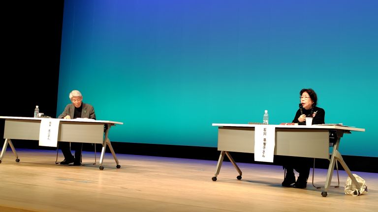 105分の映画のあと、早智子さんの講演が質問形式で行われました。