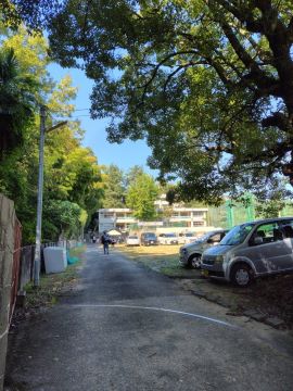バスを降り、竹林を抜けて、学校のグラウンドに足を踏み入れます。