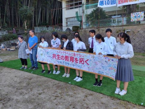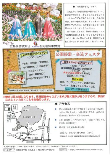 10月13日(日)、四国朝鮮初中級学校交流フェスタに、人権こども塾中高生10人と大人6人で参加してきました。