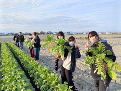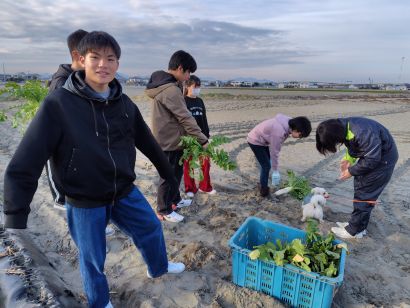 お腹いっぱいになったら、みんなで大根掘り。