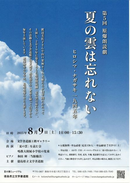 8月9日(土)、徳島文学書道館で開催された「原爆朗読劇」に、希望者2名を連れて参加してきました。