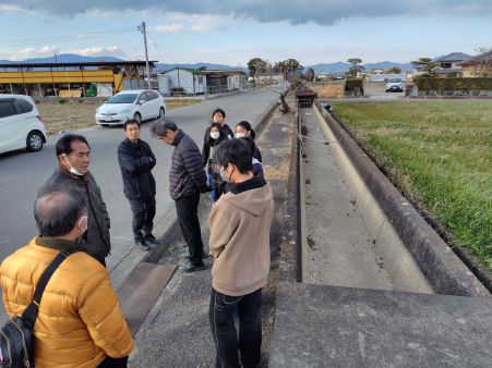 その昔、ここで馬の競争が行われていたそうですが、その脇にある用水。このように整備されるより前、まだ親や祖父母が、ゴボウ掘りなどで日中働いていたころ。幼い子どもが何人もこの用水に流され亡くなったと言います。