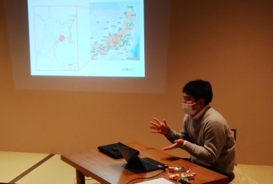 今回は、東日本大震災を中学1年生の時に体験した、宮城県東松島市出身の宮本萌(みやもとめい)さんからお話を伺いました。参加者は、中学生6人と大人3人でした。