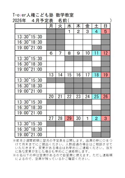 T-over人権こども塾「数学教室」