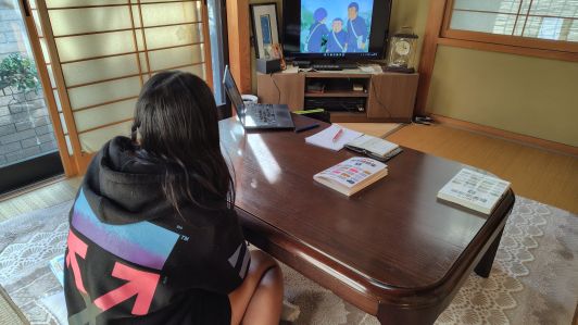 下の写真は、学習を終えたあと、ハンセン病についての動画(約5分)を見ている場面です。