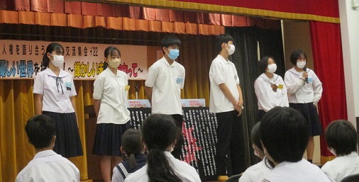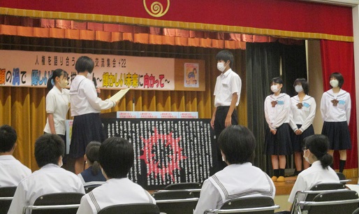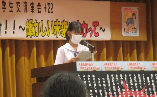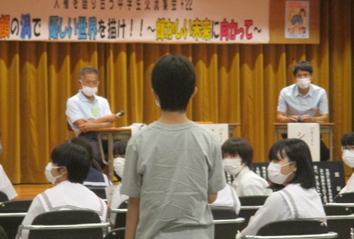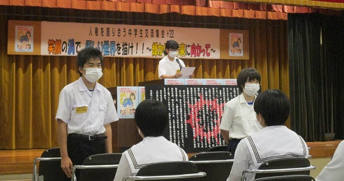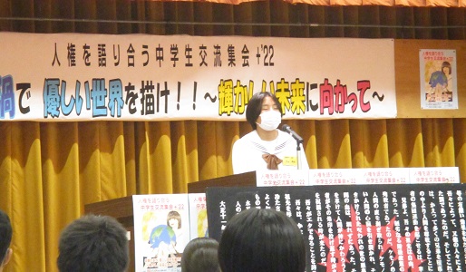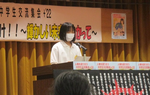 7月24日「笑顔の渦で 優しい世界を描け!! ~輝かしい未来に向かって~」のキャッチフレーズのもと、人権を語り合う中学生交流集会+2022が開かれました。