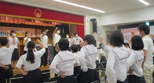 閉会行事では、実行委員長がそれぞれの思いを語り、団結ガンバロウで締めくくられました。