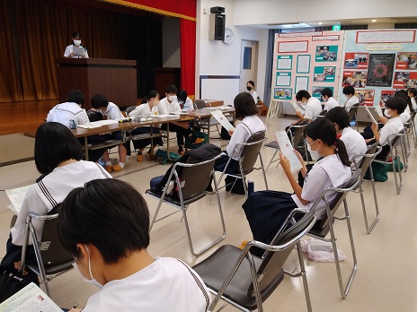 1年半前、二人に八万中学校に来てもらい、部落差別や人権問題について話してもらいました。そのときに取材に来てくれていた新聞記者が書いてくれた記事を、八万中の生徒が読みあげてくれました。そして、当時感じていた思いや、今の思いについて述べてくれました。
