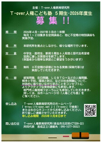 今年のT-over人権教育研究所・人権こども塾の活動計画です。